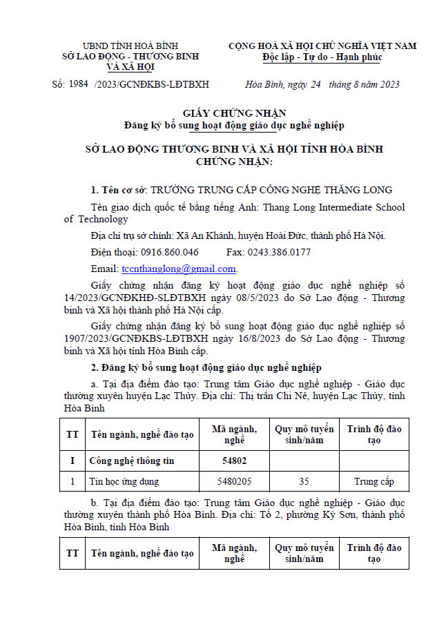 - Khải giảng khóa học 2023-2025 tại Trung tâm GDTX tỉnh Hòa Bình