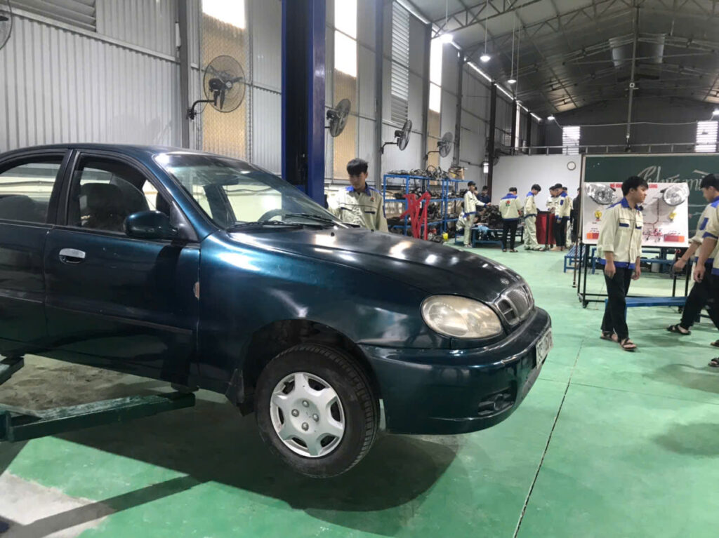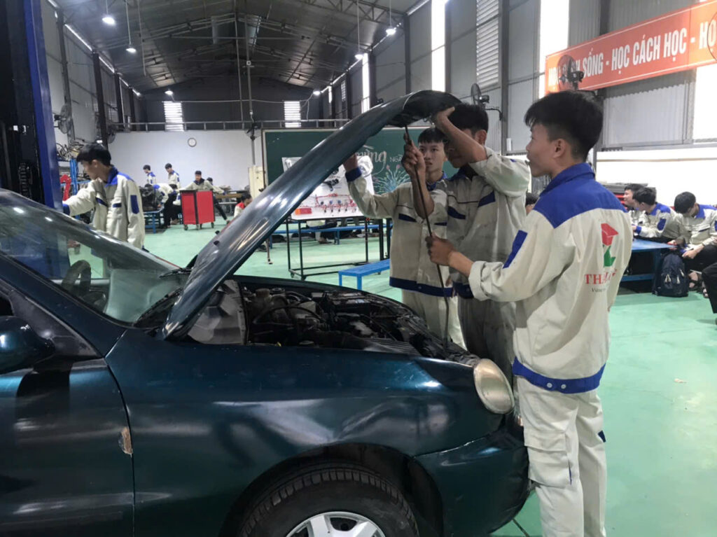 Ngày 4/12/2025, tại Xưởng thực hành Công nghệ ô tô, học sinh – sinh viên K17 Trường Trung cấp Công nghệ Thăng Long đã tham gia buổi học thực hành môđun “Kiểm tra xe trên cầu nâng”. Đây là nội dung quan trọng trong chương trình đào tạo nghề, giúp người học nắm vững kỹ năng kiểm tra và đánh giá tình trạng kỹ thuật của ô tô bằng thiết bị thực tế.