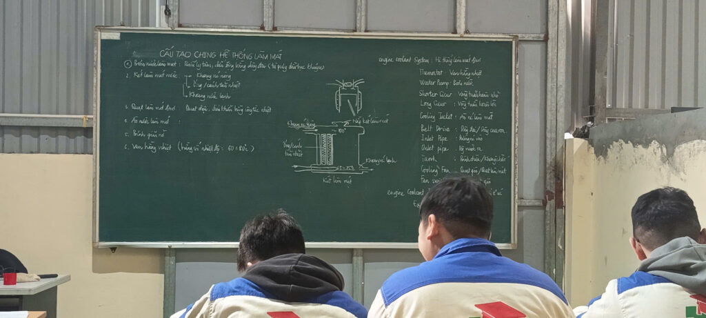 Trong điều kiện thời tiết ngoài trời se lạnh, xưởng thực hành Công nghệ ô tô – Trường Trung cấp Công nghệ Thăng Long vẫn duy trì không khí học tập nghiêm túc và sôi nổi. Học sinh, sinh viên khóa K18 đang tham gia mô đun BD–SC Hệ thống bôi trơn, làm mát động cơ với sự kết hợp chặt chẽ giữa lý thuyết và thực hành.
