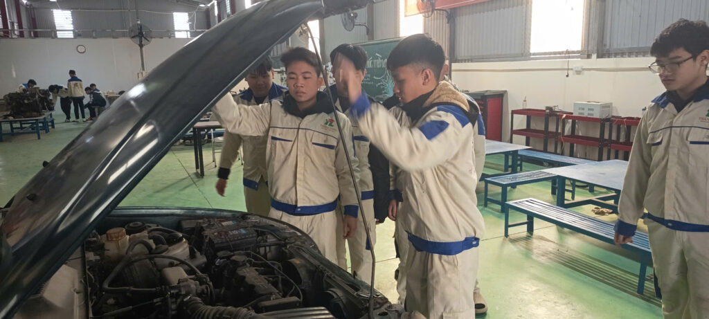 Không khí học tập sôi nổi tại xưởng thực hành Công nghệ ô tô