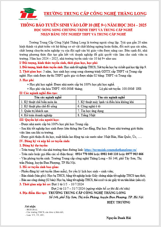 - LIÊN KẾT ĐÀO TẠO GIỮA TRƯỜNG TRUNG CẤP CÔNG NGHỆ THĂNG LONG VÀ CÔNG TY CP DECO QUỐC TẾ